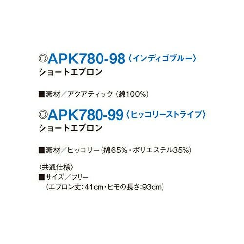 他の画像を見る 【メール便対応】エプロン 前掛 ショート丈 短め KAZEN カゼン ショートエプロン APK780-99 飲食店 制服 ユニフォーム カフェ レストラン バー 居酒屋 ソムリエ 保育士 キッチン 厨房 デニム おしゃれ かわいい 可愛い かっこいい 色落ちしにくい メーカー希望小売価格 ¥ 4,840 特別価格 ¥ 3,361 税込 十分な収納力でサービスウェアとしての機能性や実用性をプラスしました。エプロンと同素材の帽子をかぶれば多彩なコーディネートも可能です。 詳細を見る お気に入りに登録する