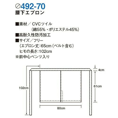 他の画像を見る 【メール便対応】エプロン 前掛 KAZEN カゼン 腰下エプロン(ビニール) 488-92 男女兼用 飲食店 制服 ユニフォーム カフェ レストラン バー 居酒屋 ソムリエ 保育士 キッチン 厨房 丈夫 おしゃれ かわいい 可愛い かっこいい 汚れにくい メーカー希望小売価格 ¥ 3,300 特別価格 ¥ 2,291 税込 ナイロンと塩化ビニールをはりあわせたターポリンを使用し、丈夫で汚れにくく耐久性抜群 耐水作業はもちろん、植物性・動物性油脂に対する耐油・耐久性を備え、マイナス20度までの寒冷環境でも素材に変化がありません。 詳細を見る お気に入りに登録する