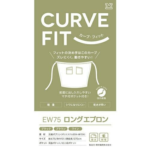 他の画像を見る 【メール便対応】エプロン 前掛 制服 ユニフォーム ロング丈 長め 興栄繊商 KOEI ロングエプロン EW75-BK、EW75-BR、EW75-WI 飲食店 ユニフォーム カフェ レストラン バー 居酒屋 ソムリエ おしゃれ かわいい 可愛い かっこいい業務用 シンプル 定番 特別価格 ¥ 1,980 税込 心地よさと、動きやすさにこだわったカーブフィットエプロン フィットの決め手はカーブ!ズレにくく、動きやすいです。中央寄りポケットやマチ付きポケットも充実していて、中央寄りポケットは自然に手を入れやすい設計。名前が書けるネームタグもあり、ほかのスタッフのものを着てしまう心配もありません。撥水・制電素材使用。 詳細を見る お気に入りに登録する