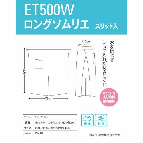 他の画像を見る 【メール便対応】エプロン 前掛 制服 ユニフォーム ロング丈 長め 興栄繊商 KOEI ロングソムリエ スリット入 ET500W-0 飲食店 ユニフォーム カフェ レストラン バー 居酒屋 ソムリエ おしゃれ かわいい 可愛い かっこいい業務用 シンプル 定番 メーカー希望小売価格 ¥ 6,050 特別価格 ¥ 3,040 税込 足さばきも軽快な、スリット入りのロングソムリエ 足さばきも軽快な、スリット入りのロングソムリエ。ポケットは右に1つ付いています。横向きに伸縮性があり、腰巾も広くとっているので、大きいサイズの方も快適に着用できます。 在庫切れ 詳細を見る お気に入りに登録する