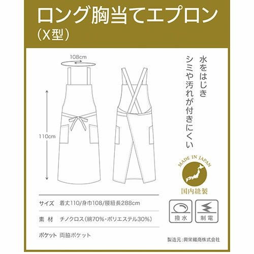 他の画像を見る 【メール便対応】胸当てエプロン X型 たすき掛け クロス 興栄繊商 KOEI ロング胸当てエプロン X型 KX110-BK、KX110-NB、KX110-WH、KX110-MGY、KX110-KH 飲食店 制服 ユニフォーム レストラン カフェ おしゃれ かわいい 可愛い かっこいい本屋 雑貨店 イベント シンプル 特別価格 ¥ 4,070 税込 膝下もお尻も隠せるロング丈の胸当てエプロン 在庫切れ 詳細を見る お気に入りに登録する