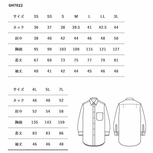 シャツ 七分袖 長袖 ワイシャツ 無地 シンプル レギュラーカラー GH7022 セブンユニフォーム 飲食店 制服 ユニフォーム メンズ レディース レストラン カフェ ビジネス オフィスカジュアル スタッフ ホール 接客 おしゃれ かわいい かっこいい 大きいサイズ 3L 4L 5L 7L