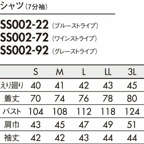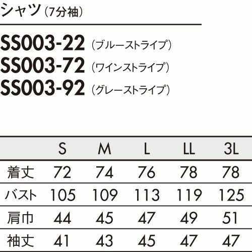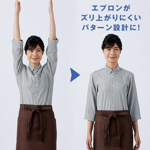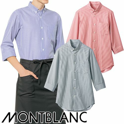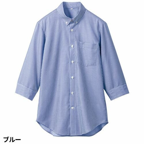 シャツ ワイシャツ レギュラーカラー 住商モンブラン ストライプシャツ ボタンダウン 7分袖 SS002-22・72・92 飲食店 制服 ユニフォーム レディース レストラン カフェ おしゃれ かわいい 可愛い
