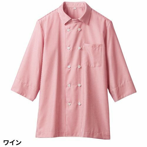 シャツ 制服 ユニフォーム 住商モンブラン コックコート風ストライプシャツ 七分袖 7分袖 SS003-22・72・92 飲食店 メンズ レディース カフェ レストラン おしゃれ かわいい 可愛い かっこいい 細身