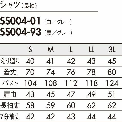白シャツ ホワイト 黒シャツ ブラック ワイシャツ レギュラーカラー 住商モンブラン モノトーンシャツ 七分袖 7分袖 SS005-01 SS005-93 飲食店 制服 ユニフォーム メンズ レディース レストラン カフェ おしゃれ かわいい かっこいい