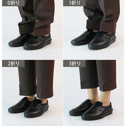 他の画像を見る 裾上げ不要 ロールイン パンツ 男女兼用 SPAU-1801 Servo サーヴォ ユニフォーム 大きいサイズ サンペックスイスト 楽ちん チノパンツ 丈調整 黒 ブラック 茶色 ブラウン 紺 ネイビー ストレッチ メンズ レディース カフェ 飲食店 レストラン ズボン 特別価格 ¥ 3,025 税込 3ステップで内側に折り込むだけで5cm間隔の裾上げが簡単に 裾上げが簡単にできるロールインパンツ(特許第6530476号/商標登録第6079198号)。裾に5cm幅の芯が貼ってあることで5cm毎に内側に折り返し、そのまま固定できる仕様です。 詳細を見る お気に入りに登録する