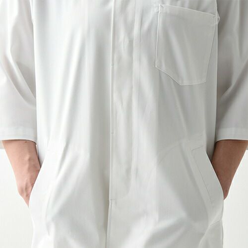 他の画像を見る 白衣 衛生衣 抗菌 コート 半袖 男女兼用 セブンユニフォーム AA402-0 食品衛生白衣 上着 作業着 作業服 制服 ユニフォーム 食品 食品工場 食品加工 調理 男性 女性 メンズ レディース ファスナー 抗菌 特別価格 ¥ 4,354 税込 ■抗菌性繊維上の黄色ブドウ球菌の増殖を強力に抑制し、細菌による悪臭も防止。工業洗濯でも機能がほとんど低下せず、衛生的な環境を長く保てます。■素材シワになりにくく丈夫な、ポリエステル/綿の混紡素材を使用しています。■襟首まわりを締めつけないゆったりめのスタンドカラー。頭巾の裾を中に入れれば、頭髪の落下を防止できます。■前立て破損や変形が少なく熱にも強い、コイルファスナーを使用しています。■袖口袖付けから脇下までを覆うゴム入りのアンダーカバーと、手首部分の幅広リブによって、体毛等の袖口からの落下を二重に防止しています。■アンダーカバー身頃は二重構造。左右のアンダーカバー(内側の布)を重ねて紐で結び、裾をパンツの中に入れれば、毛髪等の落下を防止できます。■裾丈コートの着丈はヒップまでをしっかりと覆うため、低温の職場や長時間の水仕事にも腰部を冷やすことがなく、また体のシルエットが目立たず体型をカバーできるので、女性の方にも安心です。■ポケット異物の持ち込みや埃の付着を防ぐため、ポケットは付けていません。 詳細を見る お気に入りに登録する