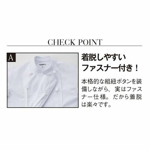 他の画像を見る 制服 ユニフォーム シェフ KE423 KE424 サーヴォ Servo 快適 清潔 飲食店 厨房服 調理服 レストラン フレンチ イタリアン 中華 おしゃれ かっこいい プロ仕様 白 黒 コックコート 特別価格 ¥ 6,187 税込 料理人を象徴するコックコート。素材や機能を比較して最適な一枚を 薄手だけどシワになりにくい着心地重視の軽量素材 詳細を見る お気に入りに登録する