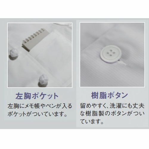 他の画像を見る 白シャツ ホワイト ワイシャツ レギュラーカラー BL-454 サーヴォ Servo 男女兼用 事務 オフィス ビジネス フォーマル 飲食店 制服 ユニフォーム メンズ レディース レストラン カフェ おしゃれ かわいい かっこいい おもてなし 清潔感 防透 防汚 特別価格 ¥ 5,637 税込 おもてなしに不可欠な清潔感に防透・防汚の機能をプラス すっきりとしたシルエットのボタンダウン。胸元には切替利用ポケット付き。後ヨーク切替下の両サイドにタックを入れ、動きやすい工夫を。汚れを押し上げ、落ちやすくする「ステインオフ加工」付き。東レの“ナノマトリックス”技術により、繊維と親和力の高いSR剤を被膜化。SR剤が洗液中で膨潤し、汚れを押し上げ、落ちやすくします。 詳細を見る お気に入りに登録する