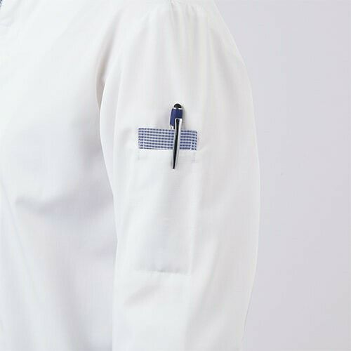 他の画像を見る 制服 ユニフォーム シェフ 住商モンブラン 調理コート 7分袖 七分袖 2-683・687・688 メンズ レディース 飲食店 厨房服 調理服 レストラン フレンチ イタリアン 中華 おしゃれ かっこいい プロ仕様 安い 特別価格 ¥ 5,118 税込 デザインはよりおしゃれに、衛生機能はより専門的に進化した白/ブルーチェックの調理コート。 七分袖の男女兼用調理コート。体毛の落下を防止する袖口ネット付き。左袖にペン差しポケット。動きやすさをサポートする背面プリーツ。破損しにくいスナップ・ファスナーで破損による異物落下を防止。襟裏に濃色を配色することで襟裏汚れの目立ちをカバー。 詳細を見る お気に入りに登録する