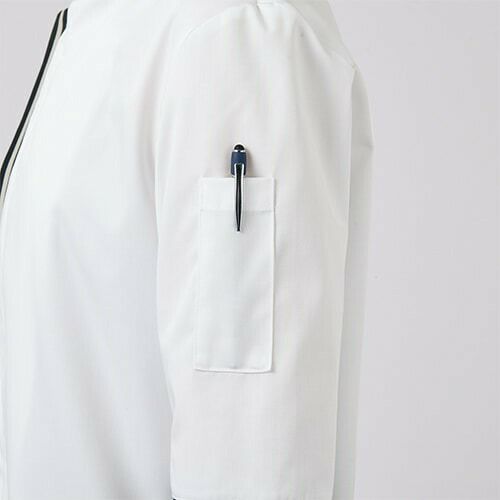 他の画像を見る 制服 ユニフォーム シェフ 住商モンブラン コックコート 7分袖 七分袖 6-1140 6-1141 メンズ レディース 飲食店 厨房服 調理服 レストラン フレンチ イタリアン 中華 おしゃれ かっこいい プロ仕様 安い 特別価格 ¥ 5,103 税込 スマートなデザインに、動きやすさと衛生機能を忍ばせた黒/グレーのコックコート。 七分袖の男女兼用コックコート。体毛の落下を防止する袖口ネット付き。左袖にペン差しポケット。動きやすさをサポートする背面プリーツ。破損しにくいスナップ・ファスナーで破損による異物落下を防止。襟裏に濃色を配色することで襟裏汚れの目立ちをカバー。 詳細を見る お気に入りに登録する