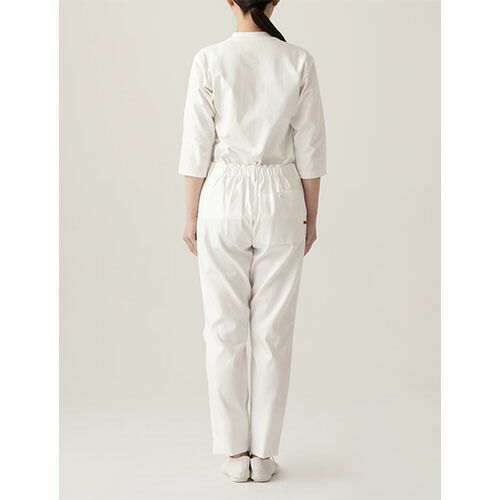 他の画像を見る セブンユニフォーム 業務用 パンツ QL7371 ズボン スラックス 男女兼用 メンズ レディース 綿100 制菌 制電 ストレッチ 動きやすい おしゃれ 飲食店 レストラン カフェ かっこいい ブランド 老舗 特別価格 ¥ 7,677 税込 薄く丈夫な新開発素材「ライトツイル」 厨房内は火だけでなく、設備熱や人の熱気など、様々な理由からとても暑い環境です。「出来るだけ涼しいコックコートが欲しい」というリアルな現場の皆様のお声から生まれたのがこの「涼感コックコート シリーズ」。暑さに対応するため生地を薄く、通気性を良くすることで懸念されたのがリネン洗濯への耐久性。“涼しく”て“洗濯耐久性”が有る、この2つの条件をクリアする新素材として開発に成功したのが「ライトツイル [ポリエステル70%・綿30%]」という生地です。耐久性の高い素材は通常ポリエステル高混率であることが多いのですが、新開発のライトツイルは綿リッチな素材。着心地が良く、見た目もナチュラルな風合いの生地となりました。細部のデザインにもこだわり、通常より小さな組み紐ボタンを付けるなど、ワークスタイルを残しつつもエレガントな雰囲気を漂わせるシリーズとなっています。薄手の生地ですが防透・UVカット加工を施しているので、薄手でも肌着が透ける心配もなく、汗をかきやすい夏場や暑い場所でも安心です。薄手でありながら耐久性を備えた「涼感コックコート シリーズ」は、蒸し暑い厨房や、夏場のオープンキッチンなどで働くスタッフに最適なアイテムです。ぜひ一度袖を通して、その涼しさ・着心地を体感してください。 詳細を見る お気に入りに登録する