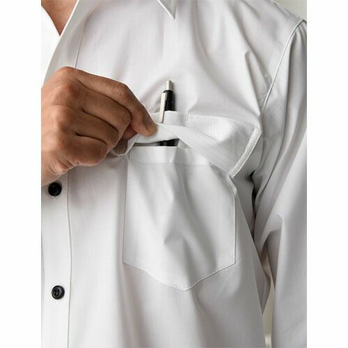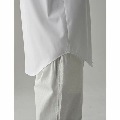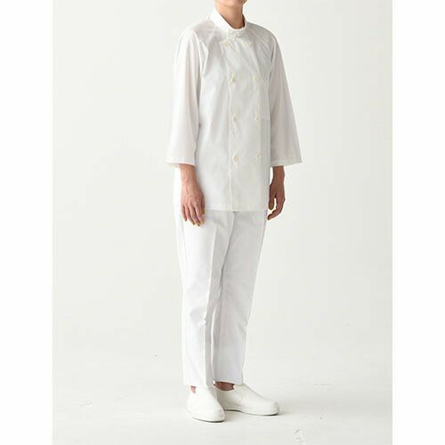 他の画像を見る セブンユニフォーム 業務用 白シャツ ホワイト シャツ ブラウス ワイシャツ シャツコート 長袖 QA7370 男女兼用 メンズ レディース 綿100 制菌 制電 ストレッチ 動きやすい おしゃれ 飲食店 制服 ユニフォーム レストラン カフェ かわいい かっこいい 老舗 特別価格 ¥ 7,343 税込 薄く丈夫な新開発素材「ライトツイル」 厨房内は火だけでなく、設備熱や人の熱気など、様々な理由からとても暑い環境です。「出来るだけ涼しいコックコートが欲しい」というリアルな現場の皆様のお声から生まれたのがこの「涼感コックコート シリーズ」。暑さに対応するため生地を薄く、通気性を良くすることで懸念されたのがリネン洗濯への耐久性。“涼しく”て“洗濯耐久性”が有る、この2つの条件をクリアする新素材として開発に成功したのが「ライトツイル [ポリエステル70%・綿30%]」という生地です。耐久性の高い素材は通常ポリエステル高混率であることが多いのですが、新開発のライトツイルは綿リッチな素材。着心地が良く、見た目もナチュラルな風合いの生地となりました。細部のデザインにもこだわり、通常より小さな組み紐ボタンを付けるなど、ワークスタイルを残しつつもエレガントな雰囲気を漂わせるシリーズとなっています。薄手の生地ですが防透・UVカット加工を施しているので、薄手でも肌着が透ける心配もなく、汗をかきやすい夏場や暑い場所でも安心です。薄手でありながら耐久性を備えた「涼感コックコート シリーズ」は、蒸し暑い厨房や、夏場のオープンキッチンなどで働くスタッフに最適なアイテムです。ぜひ一度袖を通して、その涼しさ・着心地を体感してください。 詳細を見る お気に入りに登録する