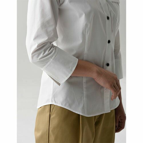 他の画像を見る セブンユニフォーム 業務用 白シャツ ホワイト ブラウス ワイシャツ スキッパーカラーシャツ 七分袖 WH7613 オープンカラー 7分袖 女性用 レディース おしゃれ 飲食店 制服 ユニフォーム レストラン カフェ かわいい ブランド 老舗 特別価格 ¥ 4,840 税込 開放的でありつつ、きちんと映る襟元に。 台襟ボタンがないことで、開放感のある「スキッパーカラー」。その特長を活かしながら、ホスピタリティを表現するためカッティングにもこだわっています。美しいサービスに合う、リラックス感のある襟元です。 詳細を見る お気に入りに登録する