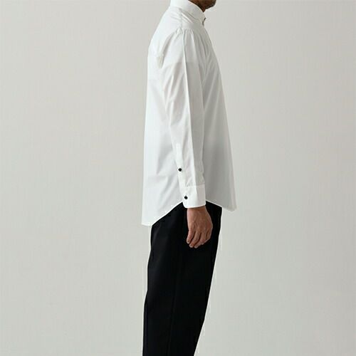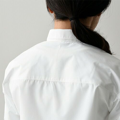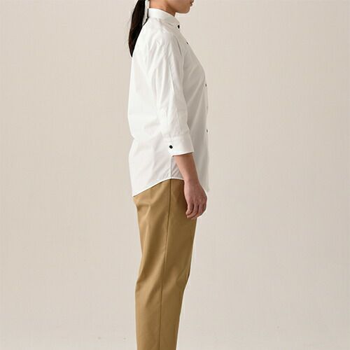 他の画像を見る セブンユニフォーム 業務用 白シャツ ホワイト 黒シャツ ブラック シャツ ブラウス ワイシャツ 抗菌スタンドカラーシャツ 長袖 CH4456 男女兼用 メンズ レディース おしゃれ 飲食店 制服 ユニフォーム レストラン カフェ 厨房 かわいい かっこいい 老舗 特別価格 ¥ 4,597 税込 衿、袖丈、色・柄で自由に選ぶ、一人ひとりに似合うシャツシリーズ。 「新定番シャツ」は単に「誰でも着られる」のではなく「それぞれの人に似合う」シャツ。「大は小を兼ねる」より「一人ひとりにフィットする」がコンセプトです。最先端の場面・風景に美しく調和し、誇りを持って働ける。そんな時代に合った仕事着としてのシャツを目指しました。細部の仕様・デザインにこだわった「新定番シャツ」首周りのネック寸は大きすぎず、適度なフィット感で清潔な印象。台衿はネクタイ着用も想定して設計、寸法設定しました。台衿ボタンを外して着用しても、ほどよい開きです。衿の形は飽きがこないよう大きすぎず小さすぎない、クセのないデザインを選択。上品な開きを心がけました。肩巾はジャストなサイズ感で見た目にもスッキリに。袖丈もダボつかず弛みのないジャストな丈感を実現しました。全体のシルエットは、バストはもたつかないサイズ感、ウエストから裾に向けてはややタイトに設定しスッキリした見た目に。裾巾は狭めで、ボトムから出して着てもだらしなく見えません。クセのない使いやすいデザインのポケットや、ノータイでも様になるようデザインした前立てなど、さまざまなコーディネートに対応する為に、細部の仕様・デザインにこだわりました。 詳細を見る お気に入りに登録する