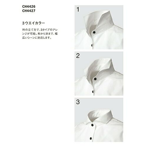 他の画像を見る セブンユニフォーム 業務用 白シャツ ホワイト ワイシャツ シャツ 長袖 CH4426 男性用 メンズ おしゃれ 飲食店 カフェ レストラン かっこいい ブランド 老舗 特別価格 ¥ 5,431 税込 襟の立て方で、3タイプの着こなし。 小さめに配した襟は、アレンジ次第で和から洋まで、幅広いシーンに対応。後ろ身頃はアームホールに継ぎがないため、腕が動かしやすく、個性的なカッティングはデザイン的特徴にもなっています。 詳細を見る お気に入りに登録する