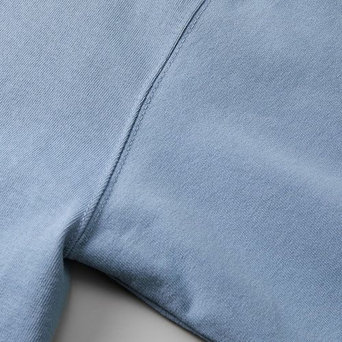 ワンマイルウェアの集大成絶妙なサイズ感の万能ショーツ 極厚の9.1オンス天竺生地で作り込んだ、シンプルながら存在感のあるショーツ。オープンエンド双糸を極厚に編み立てたことで実現したザラ感のある生地は、穿きこむことでエイジングを味わうことができます。あえてシンプルなヒップポケットなしのデザインとしたことで、仕上がりはミニマルに。ウエストひもはヴィンテージ感のある平ひも仕様とし、粗めのステッチワークなどディテールにもこだわり抜いたことで、古き良きアメリカンなリラクシングウェアの雰囲気を存分にまとった一枚となりました。アウトウェア・ルームウェア関係なくヘビロテしたくなる、心憎い魅力を持ったアイテム。