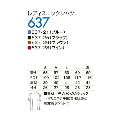 他の画像を見る 制服 ユニフォーム KAZEN カゼン レディスコックシャツ 637 -21 ~ -28 半袖 飲食店 シェフ 接客 厨房服 調理服 レストラン カフェ ベーカリー パン屋 パティシエ 中華 おしゃれ かわいい プロ仕様 チェック 吸汗 特別価格 ¥ 4,703 税込 印象的なダブルボタン仕様のレディースコックシャツ パイピングを挟み込んだ丸衿とギンガムチェックが清潔な印象。 詳細を見る お気に入りに登録する