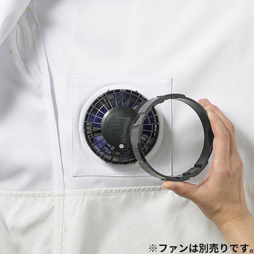 他の画像を見る コックコート 厨房服 チトセ アルベ arbe 空調服 コックコート 長袖 KC8716 制服 ユニフォーム レストラン カフェ 熱中症 暑さ対策 快適 おしゃれ長袖 ファン 扇風機 特別価格 ¥ 12,320 税込 着用して実感。圧倒的な涼しさ。空調服×コックコート 空調服とのコラボレーションで実現。熱中症のリスクを伴う熱い厨房での作業を涼しく快適に行うことができます。空調服はファンが服の中に外気を取り込みその空気が服と体の間を平行に流れます。その過程でかいた汗を瞬時に蒸発させます。体は気化熱により冷え、服の中を通った暖かく湿った空気は襟元と袖口から排出されます。 詳細を見る お気に入りに登録する