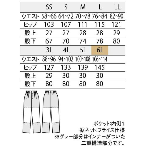 他の画像を見る 食品衛生白衣 パンツ 総ゴム 住商モンブラン ST7711 白衣 衛生衣 衛生白衣 作業着 作業服 作業用 制服 ユニフォーム 食品 工場 食品加工 厨房 調理 男性 女性 メンズ レディース HACCP ハサップ 常温作業 特別価格 ¥ 1,864 税込 〜 特別価格 ¥ 税込 優れた形態安定性に耐久性をプラス。異物混入防止仕様、制電トリコット。 形態安定性に優れたトリコット生地を使用。ノンプレスでもシワになりにくく、チヂミやヨレも発生しにくいのが特徴です。洗濯を繰り返しても、パリッと美しい外観を保ち、スナッグ耐性もキープ。糸をループ状に形成したニット素材のため空気の流れがよく、優れた通気性で快適な着心地を実現します。防汚加工で優れた汚れ落ちを発揮。繰り返し洗って長く着用できます。 詳細を見る お気に入りに登録する