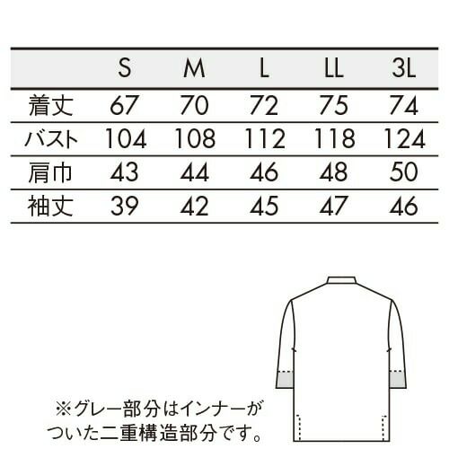 他の画像を見る 白衣 調理白衣 制服 ユニフォーム 住商モンブラン 調理コート 袖ネット付 7分袖 2-671 飲食店 厨房服 調理服 寿司屋 和食店 割烹 料亭 居酒屋 おしゃれ かっこいい プロ仕様7分袖 清潔 定番 特別価格 ¥ 5,613 税込 チャイナ服をおしゃれにアレンジしたデザイン。 チャイナ服を思わせる、襟元のボタン使いがポイント。ベーシックなスタンドカラーをモダンにアレンジした、デザインが魅力です。 詳細を見る お気に入りに登録する