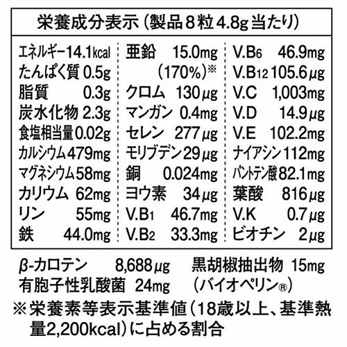 パフォーマンスアップのためのカラダづくり、コンディショニング、筋力アップなどに関わるビタミン13種・ミネラル13種に加えて、吸収をサポートする「バイオペリン?(黒胡椒抽出物)」やコンディションをサポートする「乳酸菌」を配合しました。