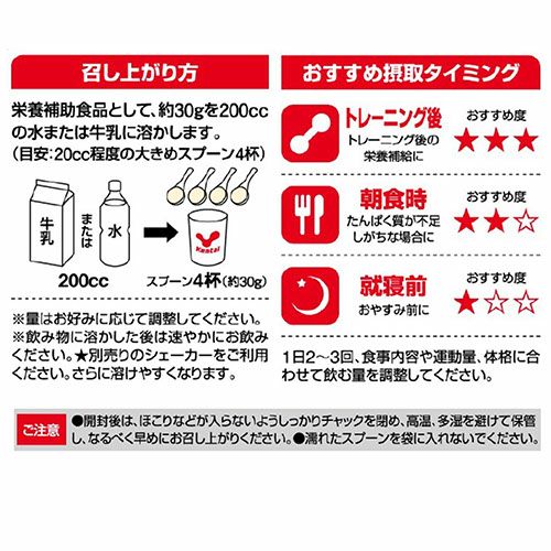 激しいトレーニングによってエネルギーが枯渇したカラダには、たんぱく質と炭水化物を的確に補うことが重要です。ダブルタンパク(ホエイ+カゼイン)・ダブルカーボ(マルトデキストリン+果糖)が、アスリートの栄養補給をバックアップ。水で溶いても美味しいので、運動後などシーンを選ばず手軽に栄養補給が可能です。