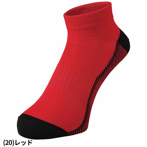 かかと部分に低反発素材、つま先(母指球小指球)部分に高反発素材を使用したスポーツ用ソックスです。