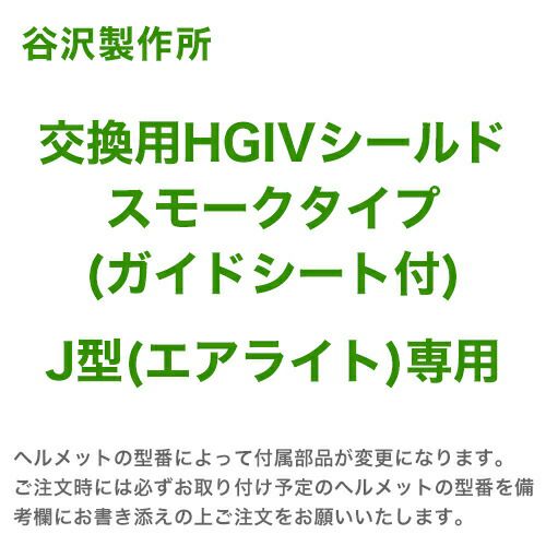 谷沢製作所 タニザワ 交換用HGIVGRスモークシールド(J型ガイドシート付) ※ご注文時にヘルメット型番をお伝えください メンテナンス用品 作業工事ヘルメット エアライト用