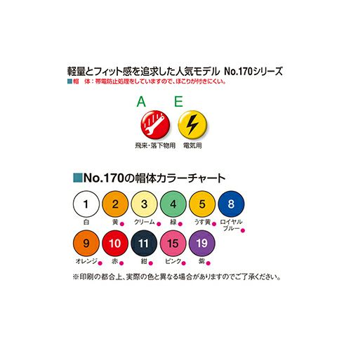 他の画像を見る ヘルメット No.170F-OT スチロールライナー入り ワンタッチ型内装 トーヨーセーフティ TOYO SAFETY アメリカン 軽量 軽い 工事ヘルメット 作業用ヘルメット 工事用 作業用 工事 現場 防災 帯電防止 特別価格 ¥ 2,370 税込 軽量とフィット感を追求した人気モデル 帯電防止処理をしていますので、帽体にほこりが付きにくい! 詳細を見る お気に入りに登録する