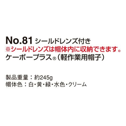 他の画像を見る 軽作業用帽子 軽作業帽 ケーボープラス No.81 トーヨーセーフティ TOYO SAFETY ワーキングキャップ ヘルメット 保護帽 シールドレンズ付き 軽量 軽い ABS製 倉庫作業 倉庫 建築 特別価格 ¥ 2,880 税込 カラフルで軽くて安全なワーキングキャップ 安心の日本製軽作業用帽子です。シールドレンズ付きです。 詳細を見る お気に入りに登録する