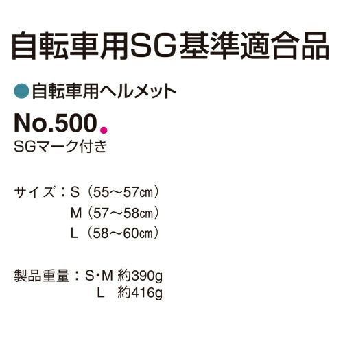 他の画像を見る ヘルメット No.500 自転車用ヘルメット トーヨーセーフティ TOYO SAFETY 自転車 大人用 子供用 メンズ レディース キッズ 通勤 通学 安全 特別価格 ¥ 3,300 税込 自転車用SG基準適合品 国が定めた「消費生活用製品安全法」のヘルメットの認定基準及び確認方法に合格したもので、その証明としてSGマークのラベルが貼られていますので、安全性はお墨付きです。お子様の通学用などにぜひ! 詳細を見る お気に入りに登録する