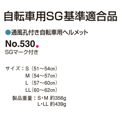 他の画像を見る ヘルメット No.530 自転車用ヘルメット 通風孔付き トーヨーセーフティ TOYO SAFETY 通気口 涼しい 自転車 大人用 子供用 メンズ レディース キッズ 通勤 通学 安全 特別価格 ¥ 2,880 税込 自転車用SG基準適合品 国が定めた「消費生活用製品安全法」のヘルメットの認定基準及び確認方法に合格したもので、その証明としてSGマークのラベルが貼られていますので、安全性はお墨付きです。サイズ調節パッドで細かいサイズ調節も可能。お子様の通学用などにぜひ! 詳細を見る お気に入りに登録する