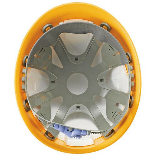 シンプルなデザインで、保護帽のスタンダード形。ひさしが無いことで、視界が広がり、周辺状況の確認がすばやく行えます。
