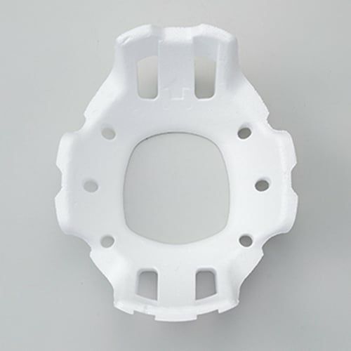 AEROMESH エアロメッシュ発泡ライナー装着時と比べ温度差-8度!風が通って安全性そのまま衝撃吸収ライナーを樹脂製メッシュ構造に変えたことで通気性が飛躍的にUPしました ・ヘルメット内部の空間を風が抜ける発泡スチロール製の衝撃吸収ライナーがなくなったことでヘルメット内部に空間が広がり格段に通気性が向上。効果的に風を通してムレを防ぎます。・発泡ライナー同等の衝撃吸収性能エアロメッシュは発泡ライナーと同等の衝撃吸収性能を発揮。外部からの衝撃に対しヘルメット内部の空間部分でエアロメッシュが伸びることで衝撃を吸収します。墜落時や飛来落下物などからしっかり頭を守ります。