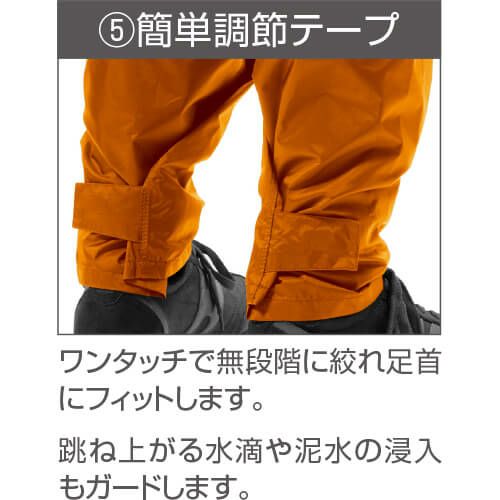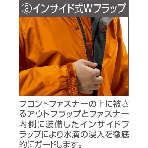 耐水圧10000mm以上で透湿性、防水性のある全天候型レインウェア!水の浸入を防ぎ、雨の中の登山や川や海での釣りなどアウトドアに最適。