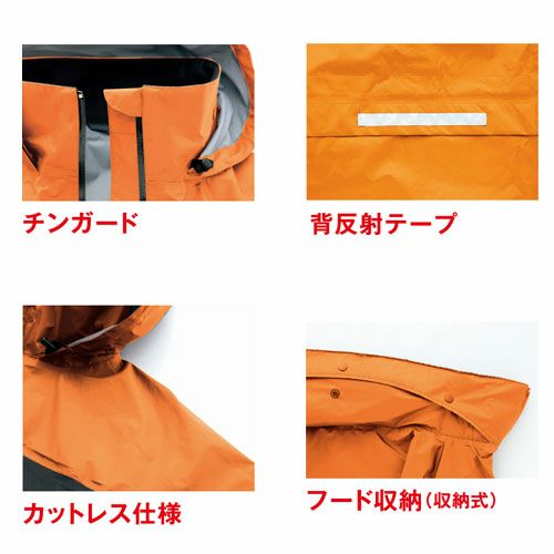 他の画像を見る レインジャケット 喜多 感動ストレッチ レインジャケット オールストレッチ透湿合羽 No2830 レインウエア 合羽 カッパ合羽 レインウエア ジャケット 特別価格 ¥ 3,457 税込 〜 特別価格 ¥ 税込 ヒトの動きを考えた、オールストレッチ透湿合羽! ・【ストレッチ】ストレッチ素材の生地を採用しているため、動きやすい!・【立体フード】しぼりヒモ付きの3D設計フードで、頭の動きを妨げない構造後頭部のマジックテープでフード位置の微調整ができます・【チンガード】ファスナーが直接肌(あご部分)に触れないように守ります・【止水ファスナー】雨の侵入を防ぐ止水タイプのファスナーを採用することで水の侵入を防ぎます中央開閉部分とポケット部分の両方に採用・【インサイドフラップ】ファスナー内側のフラップが水の侵入をブロック!・【大型ポケット】左右両サイドに小物入れに便利なポケットを採用・【反射ロゴプリント】左腕部分に反射ロゴを採用することで夜の安全も確保!・【袖口ゴム&マジックテープ】袖口を調整することで、雨風を防ぎます・【裾しぼりヒモ】裾まわりを調整し、隙間をなくすことで雨風の侵入をガード!・【シームテープ加工】縫製部分の裏面には水滴の侵入を防ぐ防水テープを貼っています・全色とも、サイズはSサイズからゆったり大きい4Lサイズまで!・高い防水力!耐水圧12,000mmH2O透湿度6,000g/平方メートル-24h・上着のみです(ズボン「No2840」は別売り) 詳細を見る お気に入りに登録する