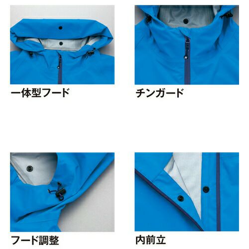 ■ストレッチ性(耐水圧):ストレッチリップストップ3層素材を採用、しなやかでレインウェア特有のゴワゴワした着用感を軽減。