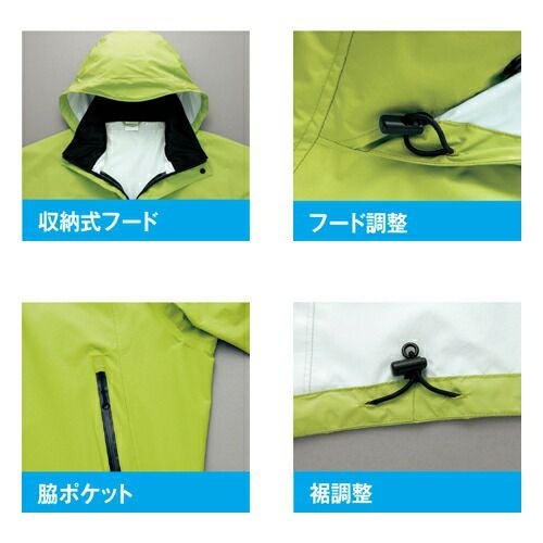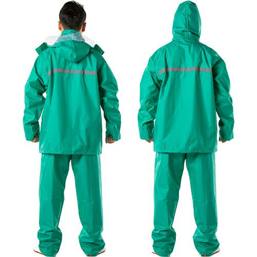 他の画像を見る ヤッケ 喜多 プロテクトストレッチレインウェア 4WAY・透湿 合羽 カッパ 防風 撥水 反射 フード付き 耐水 ポリエステル 作業着 雨具 人気 安い ワーク マン 作業着ヤッケ 大きいサイズ 4L ウインドブレーカー ジャケット ドカジャン ジャンパー ブルゾン おしゃれ No2930 特別価格 ¥ 4,980 税込 〜 特別価格 ¥ 税込 絶対的ストレッチでストレスフリーフィット!全天候対応型耐水透湿機能ウェア ・4方向全てに伸縮するストレスフリーな超軽量ストレッチ透湿レインウェア!・高い防水力 耐水圧10000mmH2O、透湿度10000g/m2-24hr・上着は水の侵入を防ぐ前たて、収納可能な立体フード(調整ひも付)、裾部分には絞りヒモ付で下からの雨・風の侵入をブロックします。・上着の左右両サイドにファスナー付の大型ポケット付(開口部最大26.5cm)・パンツの裾部分ワンタッチボタンでフィット感を調整可能・ヒップ部分には縫目のないシームレス設計を採用で履き心地を向上・ウエスト部分はゴムと絞りヒモで脱ぎ履きしやすい!・反射ロゴプリントを上着の左胸部分、背面右上部とパンツの左膝部分に配置し夜の安全も確保!・縫製部分の裏面には防水テープ(シームテープ加工 )で水の侵入を防ぎます。・上下セット 詳細を見る お気に入りに登録する