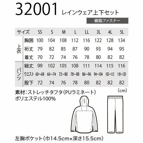 他の画像を見る 合羽 上下セット ジーベック XEBEC 全天候型レインウェア上下セット 32001 レインウエア 合羽 カッパ 防水 透湿 伸縮 ストレッチ 男女兼用 おしゃれ カッコいい 特別価格 ¥ 9,276 税込 〜 特別価格 ¥ 税込 配色切り替えがスポーティなカジュアルレインウェア 透湿性、防水性のあるストレッチ素材を使用した全天候型レインウェア。コントラストのある配色と胸の圧着ファスナーがスポーティなデザインです。水の浸入を防ぐ目貼り仕様やポケットの水切り仕様、屈伸時のずり上がりを防止するシリコンパイピングなどレインウェアとしての機能はバッチリ。防水ラミネートは防風性もありウィンドブレーカーとしても着用いただけます。透湿性にも優れ、蒸れにくい素材でいつでもどこでも快適に着用いただけます。 詳細を見る お気に入りに登録する