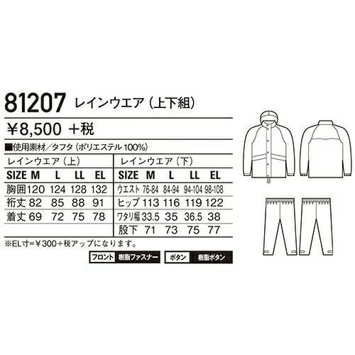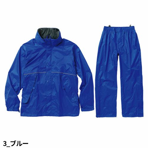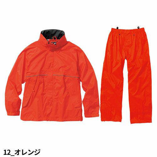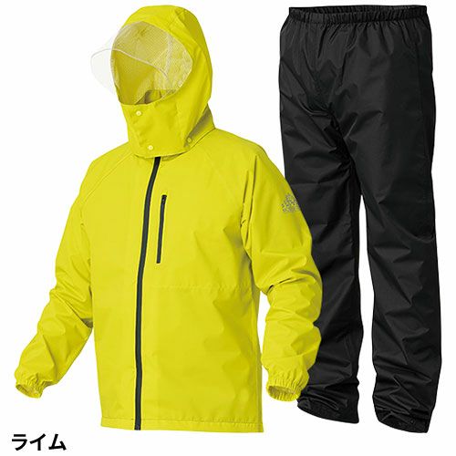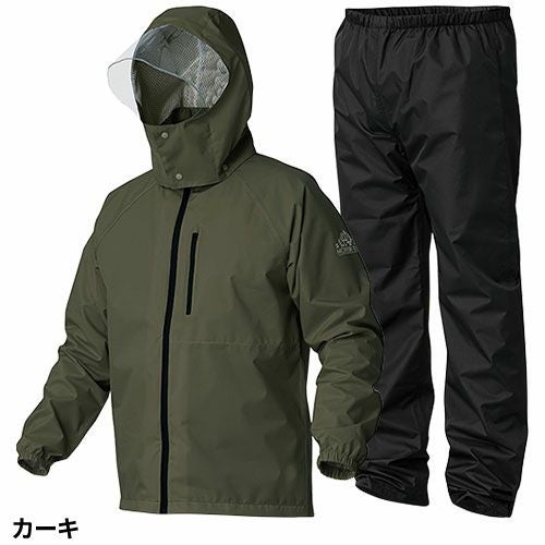 作業用に!普段使いに!アウトドアに快適な機能を搭載全天候型レインウェア ・雨は通さず、湿気は逃がす! 着心地快適な透湿合羽です。・上着は、着脱可能な透明バイザー付大型立体フード(ヘルメット対応)、左胸に止水ファスナー付ポケット、背面腰部分と左腕に反射プリント、かがんでも背中が出にくいサイクルカット仕様と機能満載・止水ファスナーとインサイドフラップ構造の2つで、雨や風の侵入を防ぎます。・背中腰部分と左腕の反射プリントや、上着腰回り部分の縫製に反射糸を採用することで夜間の視認性を向上させています。・パンツは、ヒップゆったりのリラックスフォルムで履きやすい。・絞りヒモ付のウエスト部分はゴムで、脱ぎ履きしやすいです。・パンツ裾部分のワンタッチボタンで、フィット感を調整可能です。・サラサラ上下総裏メッシュで蒸れやベタツキを防ぎます。・高い 防水力 耐水圧 10,000mmH2O 、透湿度 10,000g/m2-24hr・シームテープ加工 縫製部分の裏面には水滴の侵入を防ぐ防水テープを貼っています・上下セット