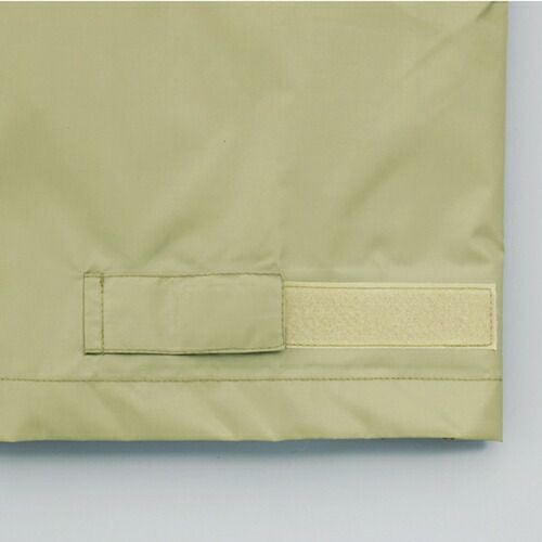 前開きヤッケとセットで着用できるパンツ 素材は汚れが付きにくいナイロン100%に撥水加工前ファスナー付きで着脱が容易