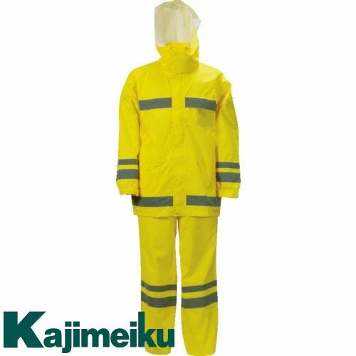 合羽 上下セット カジメイク Kajimeiku 【在庫処分特価】視認性レインスーツ イエロー BLLサイズ レインウエア 合羽 カッパ合羽 レインウエア 上下セット