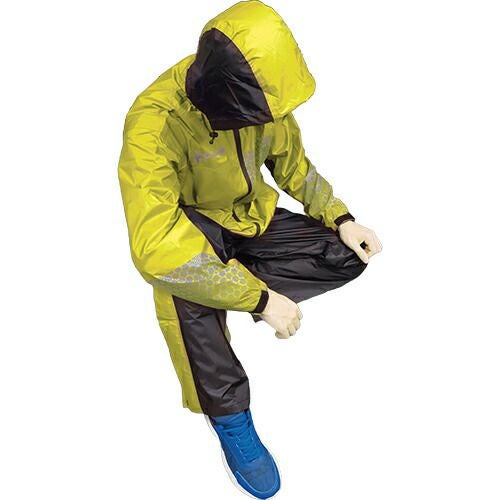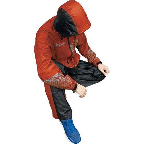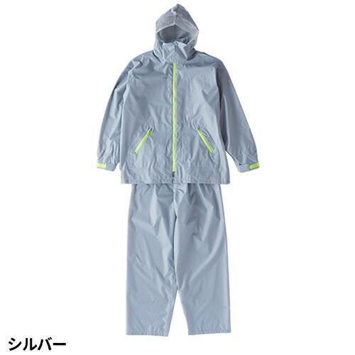 絶対的ストレッチでストレスフリーフィット!全天候対応型耐水透湿機能ウェア ・4方向全てに伸縮するストレスフリーな超軽量ストレッチ透湿レインウェア!・高い防水力 耐水圧10000mmH2O、透湿度10000g/m2-24hr・上着は水の侵入を防ぐ前たて、収納可能な立体フード(調整ひも付)、裾部分には絞りヒモ付で下からの雨・風の侵入をブロックします。・上着の左右両サイドにファスナー付の大型ポケット付(開口部最大26.5cm)・パンツの裾部分ワンタッチボタンでフィット感を調整可能・ヒップ部分には縫目のないシームレス設計を採用で履き心地を向上・ウエスト部分はゴムと絞りヒモで脱ぎ履きしやすい!・反射ロゴプリントを上着の左胸部分、背面右上部とパンツの左膝部分に配置し夜の安全も確保!・縫製部分の裏面には防水テープ(シームテープ加工 )で水の侵入を防ぎます。・上下セット