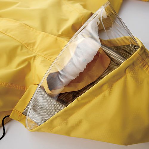 腰道具と合わせて使えるショート丈ファンを取り付けられるプロ向けレインブルゾン 年中ムレず快適にレインウェアにファンを取り付けると裾から取り込んだ風が全身を巡って首元・手首から抜け身体にこもった熱を逃がし結露を抑えます。ファンを取り外せば通常のレインウェアとして着用できるのでフォーシーズンご対応いただけます。作業現場やアウトドア、イベントシーンにも使える今までにないレインウェアです。