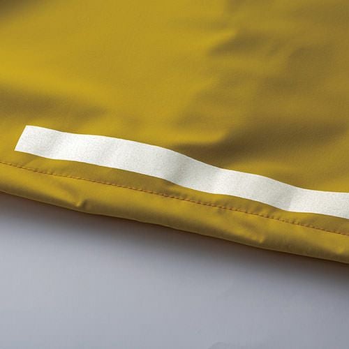 カッパとして必要な機能だけ残しました!!耐水圧10000mm、大雨にも負けない!透湿性5000g/m2 24h(b-1法)衣服内の蒸れを軽減! レインコート、レインパンツ合わせて約500gと軽量化を実現蒸れを防ぐ裏地メッシュ、取り外し可能なフード付きレインコートの背中裾部には視認性の高い反射プリントを採用