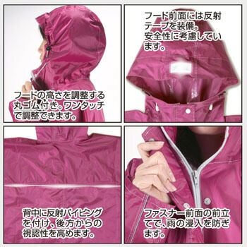 雨の中での自転車では両手があくレインポンチョは必須アイテム!女性やお子様でも着用いただける雨具です。