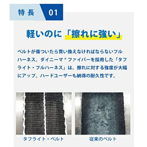 他の画像を見る 安全帯 フルハーネス タニザワ 谷沢製作所 新規格 墜落制止用器具 ST#523A タフライト 単体 軽量バックル(SK) 背中Y型 水平 フラット フルハーネス安全帯 ハーネス 一般 高所作業 柱上作業 建設工事 軽量 簡単着脱 メーカー希望小売価格 ¥ 71,390 特別価格 ¥ 37,090 税込 強度そのまま 驚異的な軽量化を実現「タフライト・フルハーネス」 背中Y型形状で、さらに軽く、すっきりと快適な使用感。軽量バックル付きのフルハーネスです。 カートに入れる お気に入りに登録する