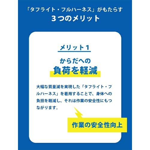他の画像を見る 安全帯 フルハーネス タニザワ 谷沢製作所 新規格 墜落制止用器具 ST#522A タフライト 単体 作業ベルトなし 背中X型 V字 腿ベルト フルハーネス安全帯 ハーネス 一般 高所作業 柱上作業 建設工事 軽量 簡単着脱 メーカー希望小売価格 ¥ 49,368 特別価格 ¥ 25,610 税込 強度そのまま 驚異的な軽量化を実現「タフライト・フルハーネス」 質量650g。より多くのユーザーの方々へ。幅広い体型に対応する肩ベルト長さ調整バックル付き。 カートに入れる お気に入りに登録する
