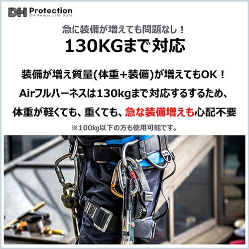 他の画像を見る 安全帯 フルハーネス DH Protection 新規格 墜落制止用器具 Air 水平フルハーネスワンタッチ 130kg対応 アルミ DH01-JH13-11 DH01-JH13-12 DHプロテクション 背中X型 水平型 フルハーネス安全帯 ハーネス 一般 高所作業 柱上作業 建設工事 軽量 特別価格 ¥ 12,100 税込 着用したことを忘れるくらいの圧倒的な軽さ!重さ950g! 国内最軽量(130kg対応品基準)という驚きの軽さを体験!130kgまで対応するため、体重が軽くても、重くても、急な装備増えも心配不要!胴ベルトを二重でしっかり固定する構造、座骨サポートベルトが墜落後の下半身を軽減しますので安全性も◎です。 詳細を見る お気に入りに登録する